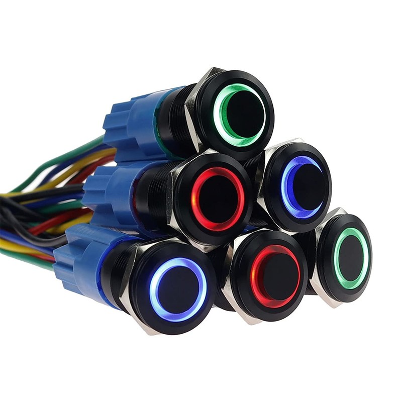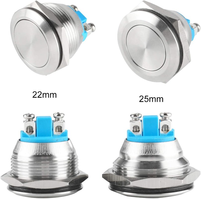 22 মিমি ধাতব চাপ বোতাম সুইচ,অন-অফ, আলোকিত, ডট এলইডি, মুহুর্তের ফাংশন, 1NO1NC, 5 পিন